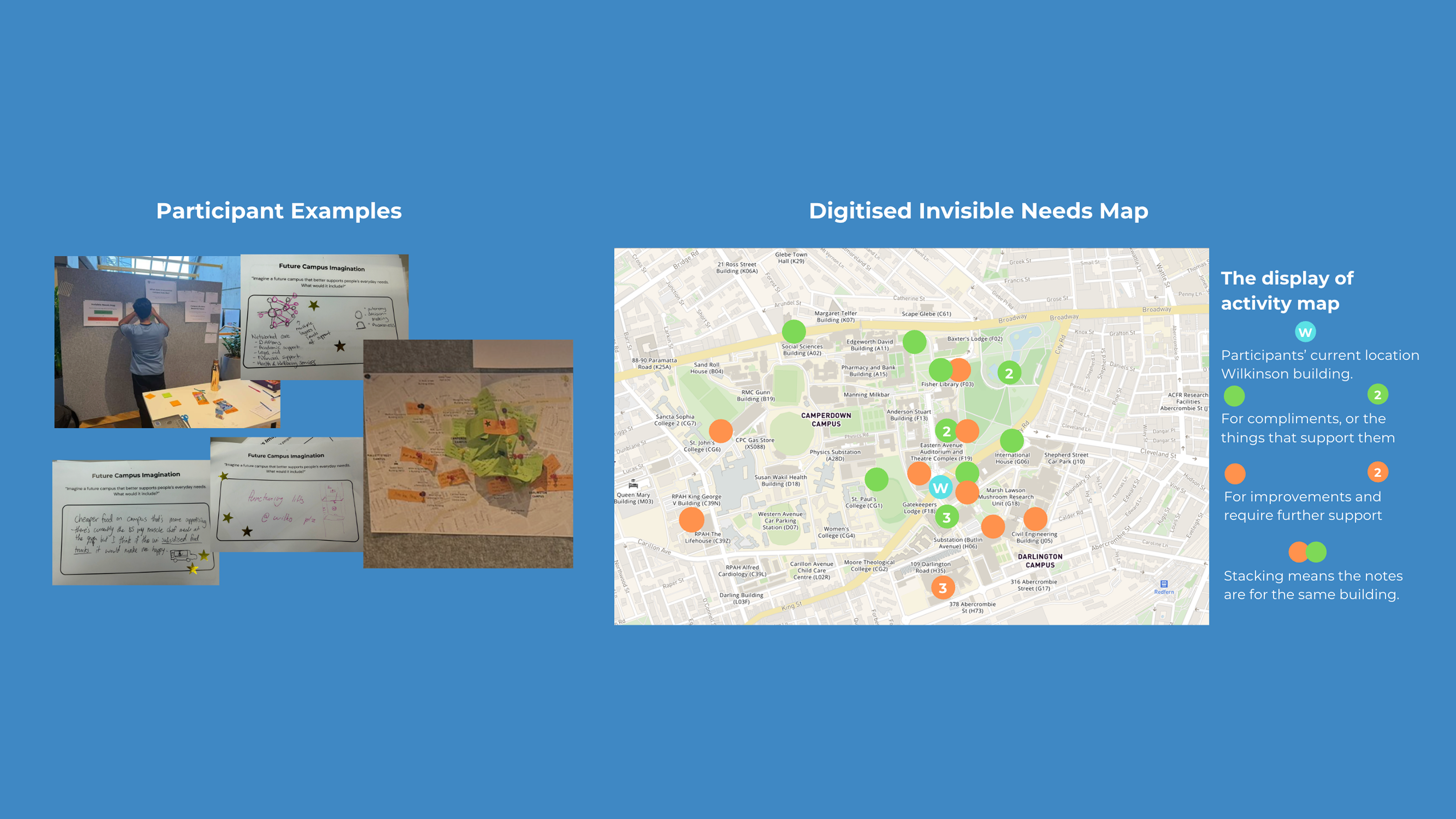 The insights inform ongoing generative co-design workshops exploring how digital platforms could make these invisible needs visible and actionable across campus systems.